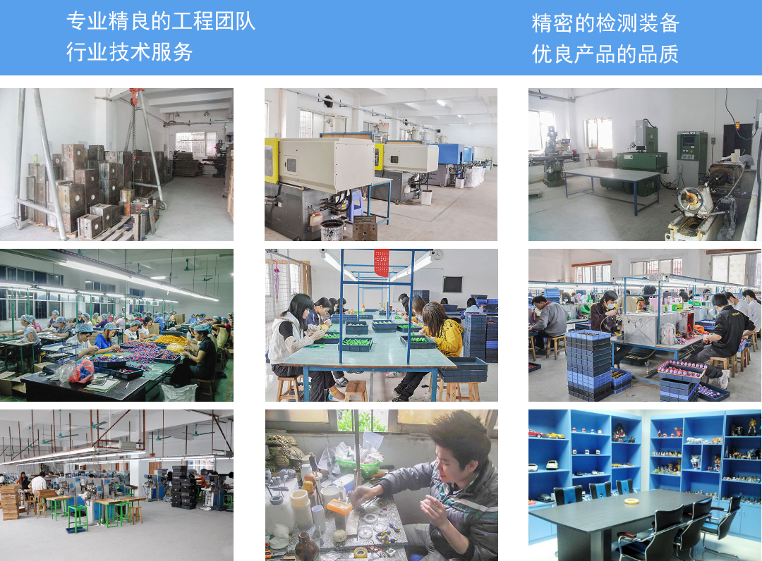 浩龍塑膠玩具制品有限公司成立于2009年,位于交通發(fā)達經(jīng)濟繁榮的珠江三角洲東莞市長安鎮(zhèn),是一家專業(yè)制作塑膠玩具的工廠。我廠主要生產(chǎn)3D立體塑膠卡通人物,仿真人物雕像,手機鏈,鑰匙扣,促銷贈品,玩具禮品。我廠歡迎來樣定做,為客戶提供一體化服務(wù):手版—模具—注塑—噴油—移印—裝配—包裝—出貨。